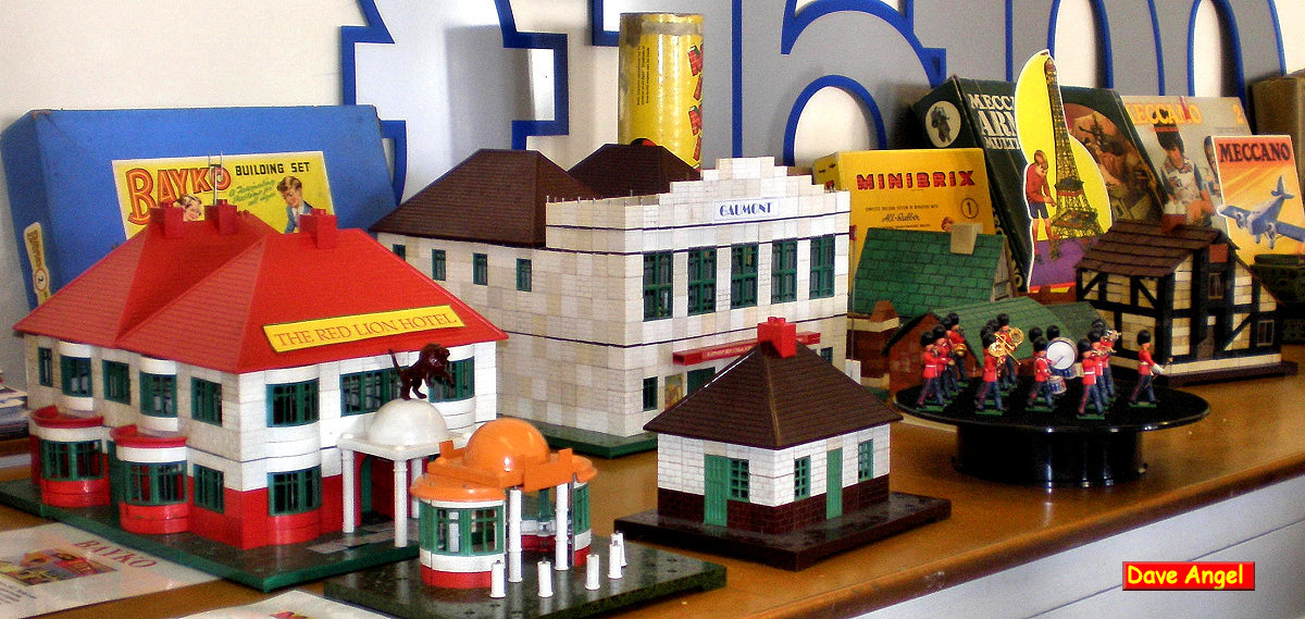 Tri-ang and Gee Bee as well as buildings by Bayko. In the centre of the hall was a display of construction toys including Minibrix, Bayko Arkitex (both Scales)