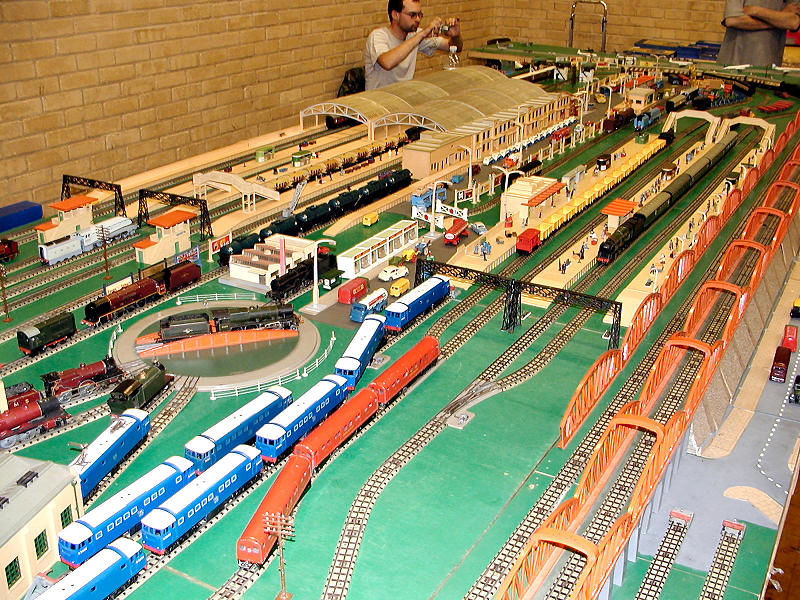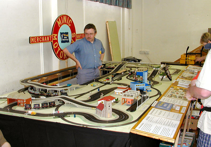 Tri-ang Super 4 layout with tons of Model land and Minic Motorway buildings