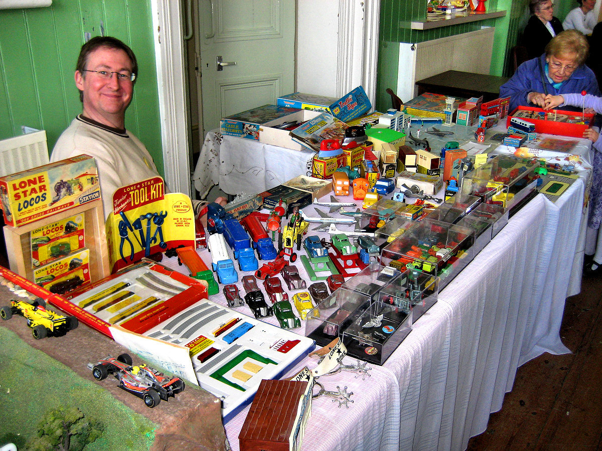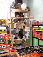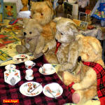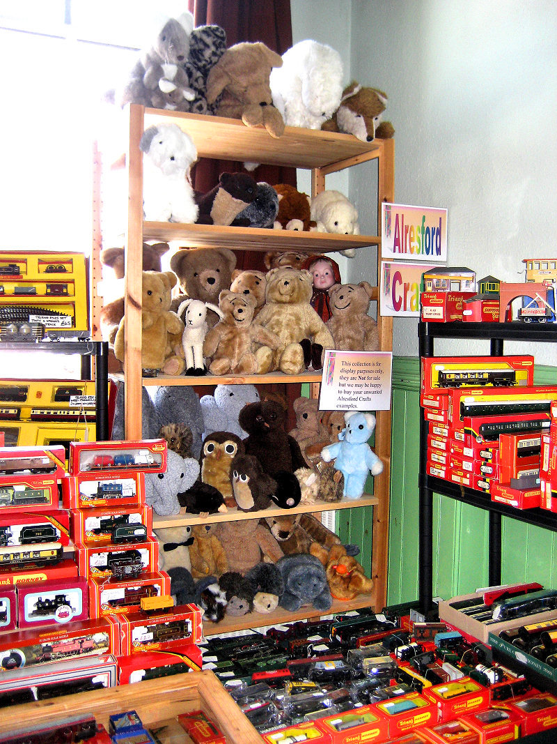 As you enter the upstairs hall your eyes are drawn upwards by Andy and Elaine Hyelmans impressive display of Alresford Crafts. These are soft furry animals made in the Station Mill Alresford up to 1992.They even added to the collection on the day.