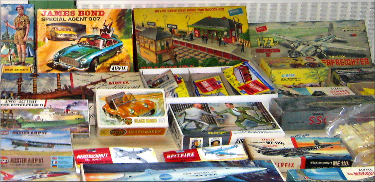 excellent display of early kits including James Bond sets