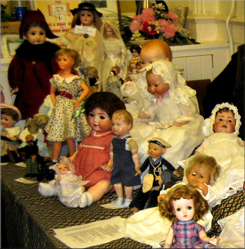 were I believe quite poor. In the back room Sandy and Harry Constantine had a wonderful selection of Dolls from the 1880’s to 1950’s. I know nothing about Dolls however the display was excellent and many doll aficionados spent a long time at the stand. Alongside was a large Dolls House in an Edwardian setting.