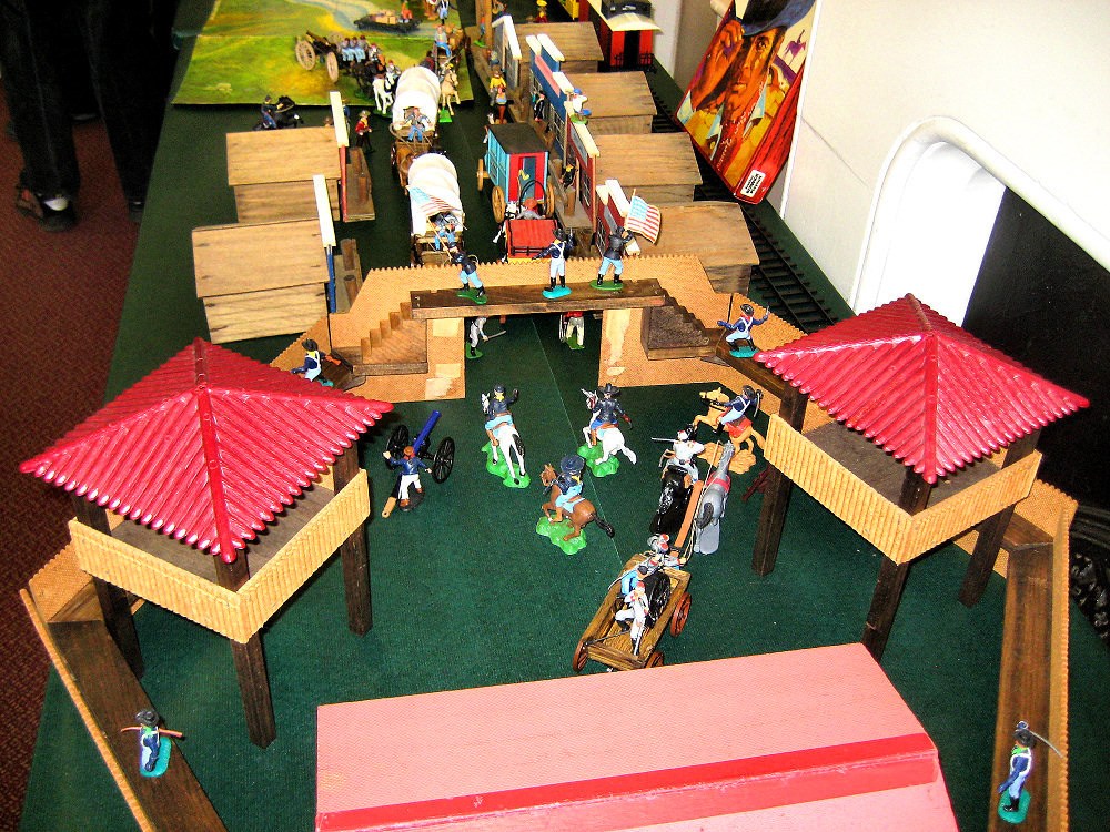with the very rare Alongside the far wall was a Wild West display with a Playcraft wooden fort, Park Toys