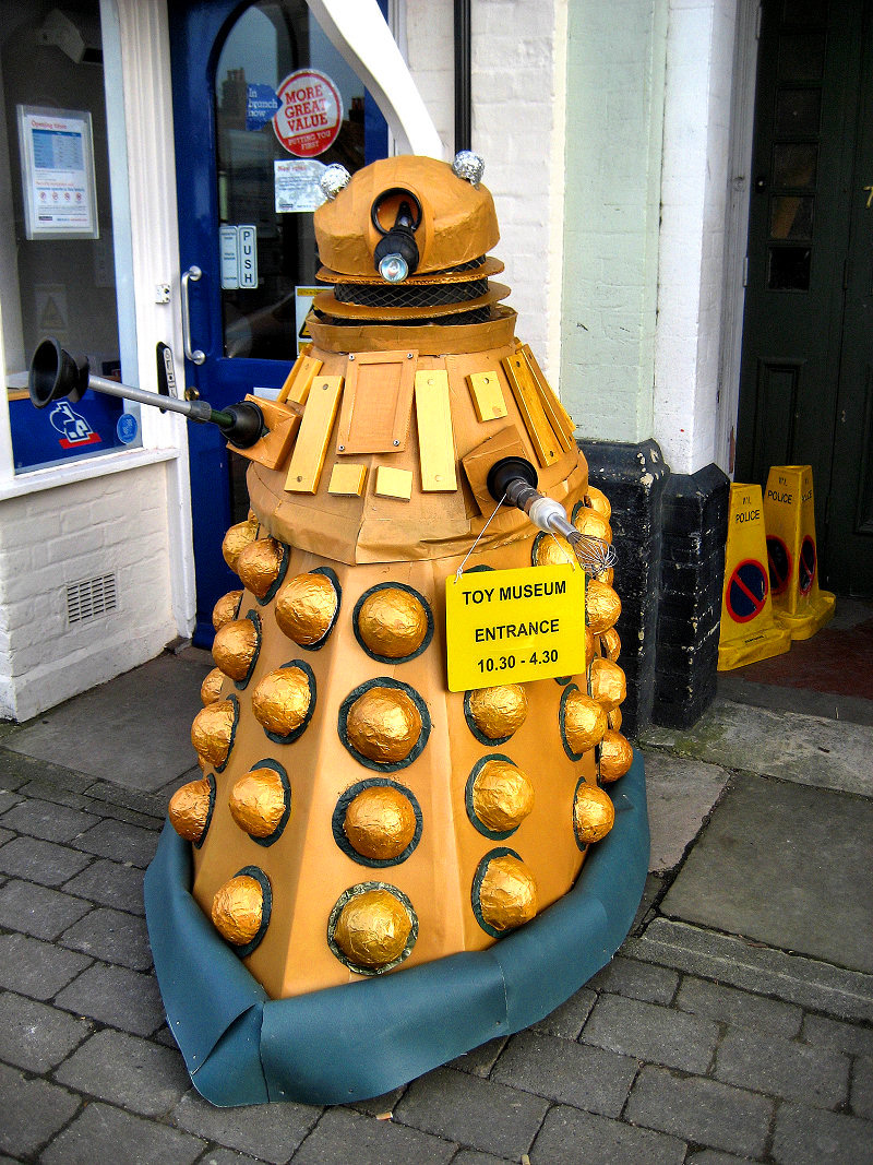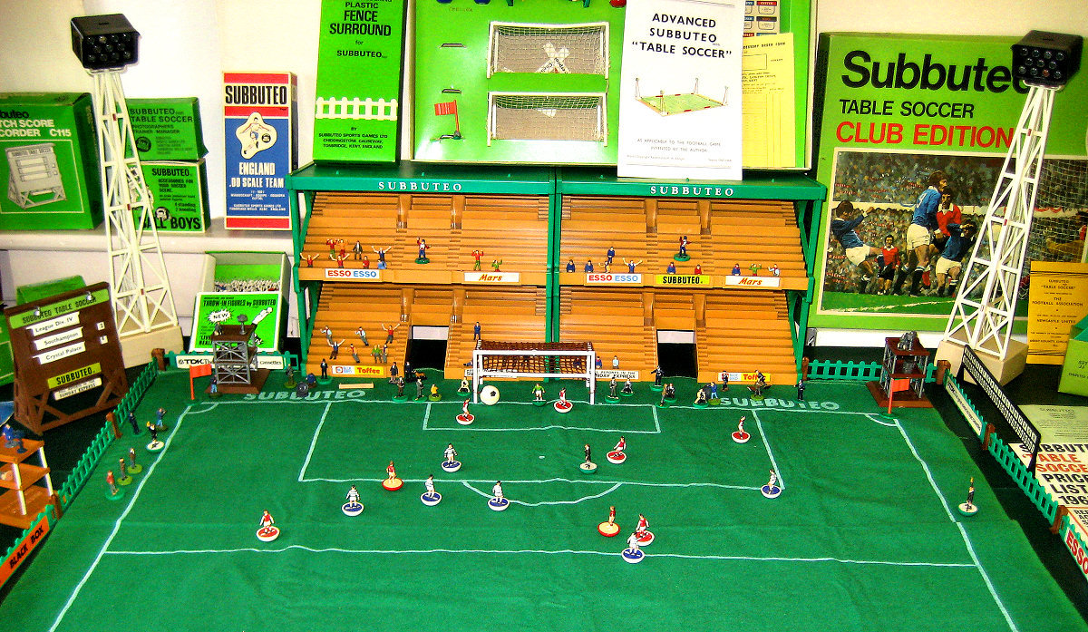 The second At the entrance was an eye catching full size Dalek made by residents and day visitors to the Simply Unique Studio at Bells Piece, A Leonard Cheshire Disability home for people with learning difficulties. The ‘museum’ is a collection of toys brought together by various collectors from around the country. As we enter the downstairs hall we are taken back to the sixties with a bucket and spade plus model boats seaside display. Alongside is a full Subutteo collection with grandstands, floodlights and lots of spectators, photographers, ball boys etc. The ball was set up so many of the public could not resist flicking the player to score a goal.