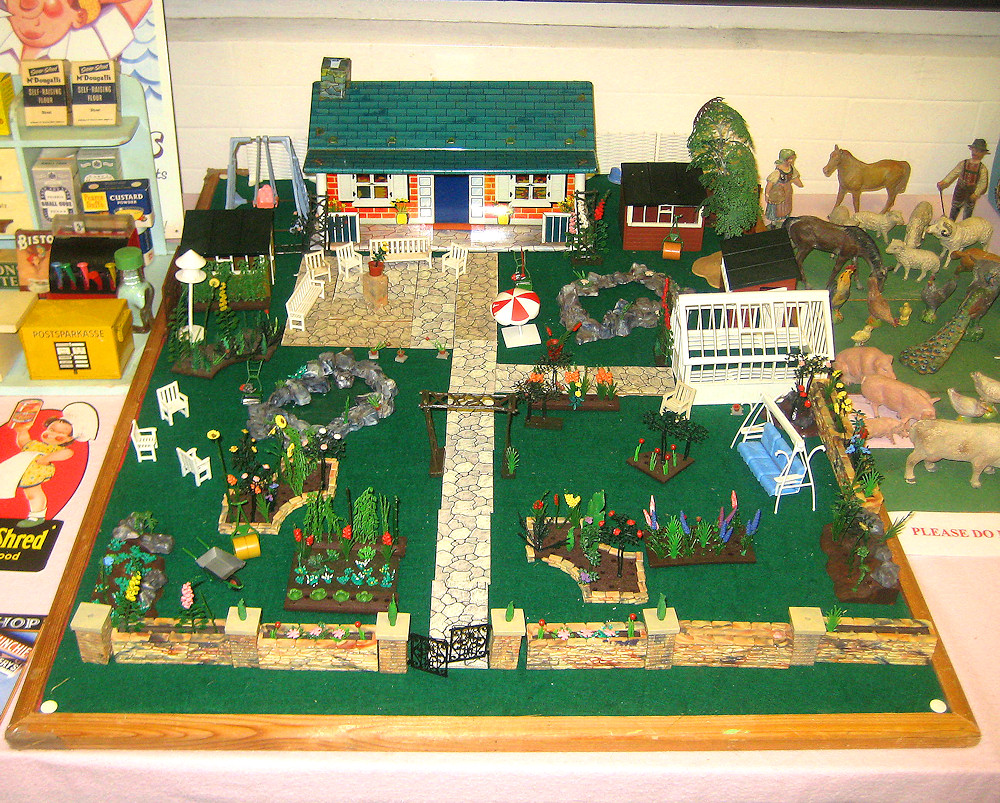with a Mettoy bungalow and a set of Elastolin farm animals completed the