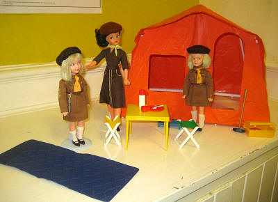 Brown Owl and two Patchs dressed as Brownies out camping with their