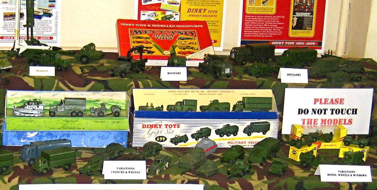with his collection of rare Dinky Military vehicles made by Meccano in